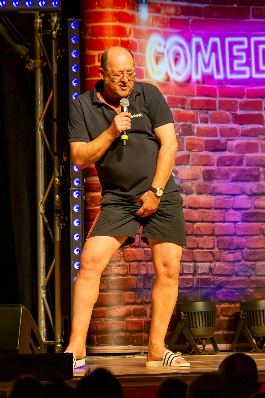"Die Comedy Camp Tour ist für mich jedes Mal das Highlight des Jahres - auch nach 20 Jahren noch." Das ist die kurze Antwort, die man von Gastgeber Jürgen Bangert bekommt, wenn man ihn auf das Comedy Camp anspricht. Dabei ist es immer sein Ziel, jede einzelne Veranstaltung für alle Beteiligten zum Highlight werden zu lassen. Immer nach dem Motto "Wir sind schließlich zum Spaß hier", rollt er auch im Herbst 2025 wieder den roten Teppich für seine Kolleginnen und Kollegen auf der Bühne aus. Natürlich greift er selbst zwischendurch auch in die Gag-Kiste und vermutlich auch wieder zum Telefon. Elvis-Fans wissen, was das bedeutet.