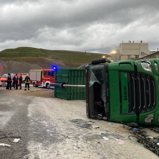 Muldenkipper stürzt in die Tiefe. Ein Mitarbeiter wird schwerverletzt.