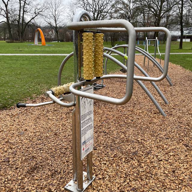 An den außenliegende Sprunggruben wird ein Angebot vor allem für Jugendliche geschaffen. Platzflächen und Zuwegung werden nach den vorhandenen Strukturen des Parks ausgelegt. Das Sport- und Freizeitangebot wird durch Kletterstangen (für freies Klettern) sowie durch Tischtennisplatten und „Trampolin-Hügel“ erweitert. Das Gelände wird im gesamten Bereichs wird modelliert (d.h. aufgeschüttet) und mit Strauchgruppen bepflanzt. Zudem werden Blumenwiesen angelegt.