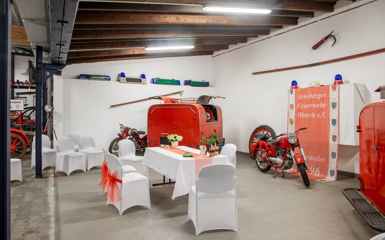 Für die Trauung biete das Feuerwehrmuseum eine ganz besondere Atmosphäre, so die Stadt Arnsberg. Rund 40 Menschen finden in der Fahrzeughalle Platz, der Zugang ist barrierefrei. Cafeteria oder Innenhof können kostenlos für einen Sektempfang genutzt werden. Die Location biete sich für unvergessliche Fotos an, zum Beispiel mit den Fahrzeugen. Auch Hochzeitsfahrten mit den historischen Fahrzeugen sind möglich.