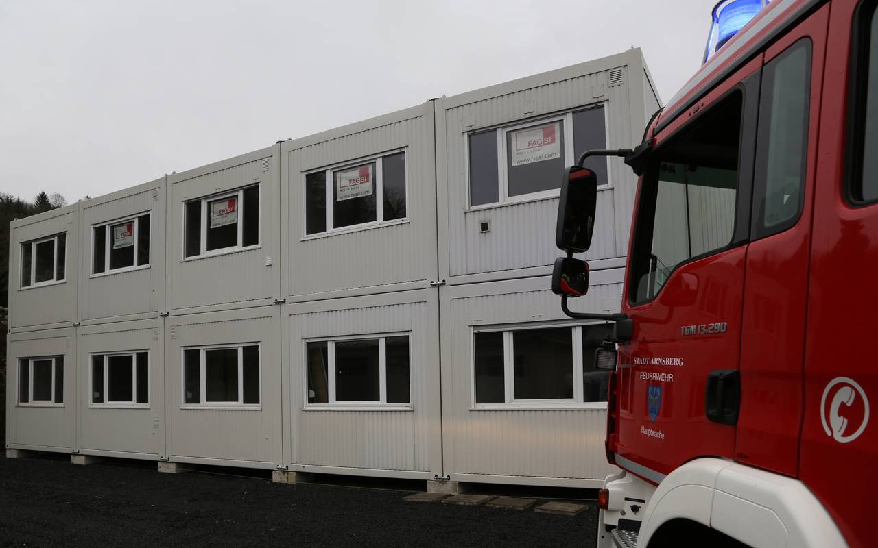 In Alt-Arnsberg ziehen Feuerwehrleute und Rettungskräfte vorübergehend in Container um.