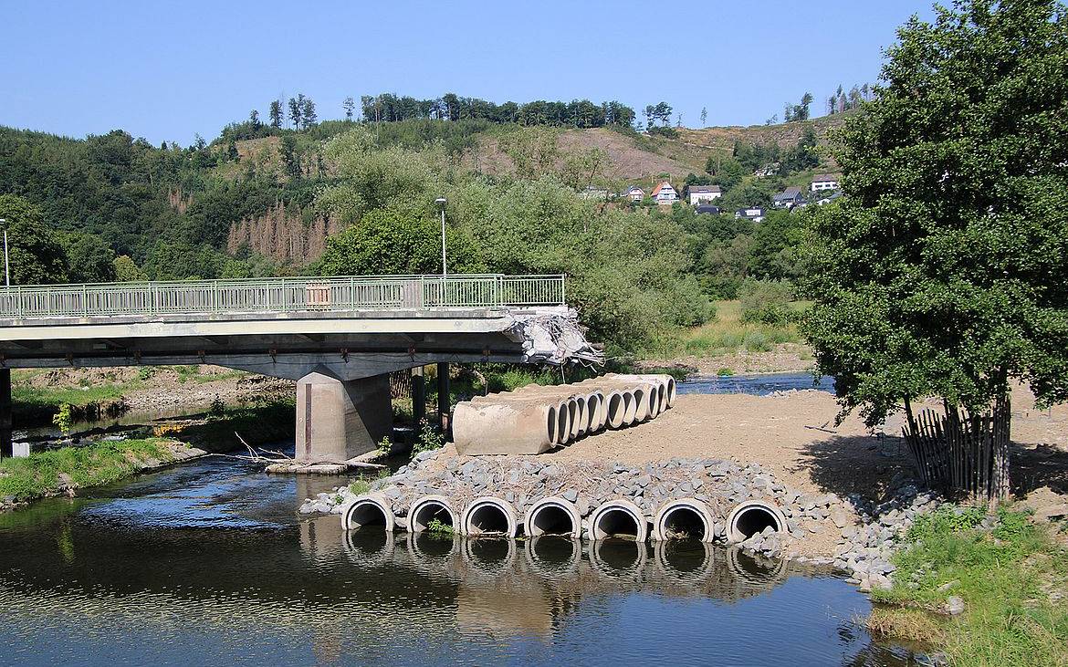 Bis es soweit ist, wird an der Dinscheder Brücke der Abbruch der südlichen Brückenhälfte vorbereitet. Ab August darf in der unter der Brücke fließenden Ruhr wieder gearbeitet werden. Zu dem Zeitpunkt wird die Arbeitsinsel von der bereits abgebrochenen Nordhälfte in das Flussbett der Südhälfte verlegt. Im Anschluss erfolgen die Abrissarbeiten. „Wir müssen sehr konzentriert und schnell arbeiten“, weiß Aßhoff. „Die Auflagen der Umweltbehörden erlauben uns nur noch bis Oktober Arbeiten innerhalb des Flusses auszuführen“.