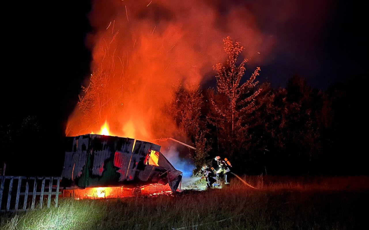 Am späten Mittwochabend (22.8.) ist in Brilon ein Bauwagen niedergebrannt. Als der Löschzug Brilon um 22.40 Uhr alarmiert wurde, lagen zunächst nur Informationen über einen unklaren Feuerschein im Wald in der Nähe des Krankenhauses vor, berichtet die Feuerwehr Brilon. Nachdem die Einsatzkräfte diesen auf der Anfahrt aus der Ferne auch schon entdeckt hatten, wurde das Alarmstichwort erhöht und eine weitere Gruppe sowie die Drohneneinheit nachalarmiert.