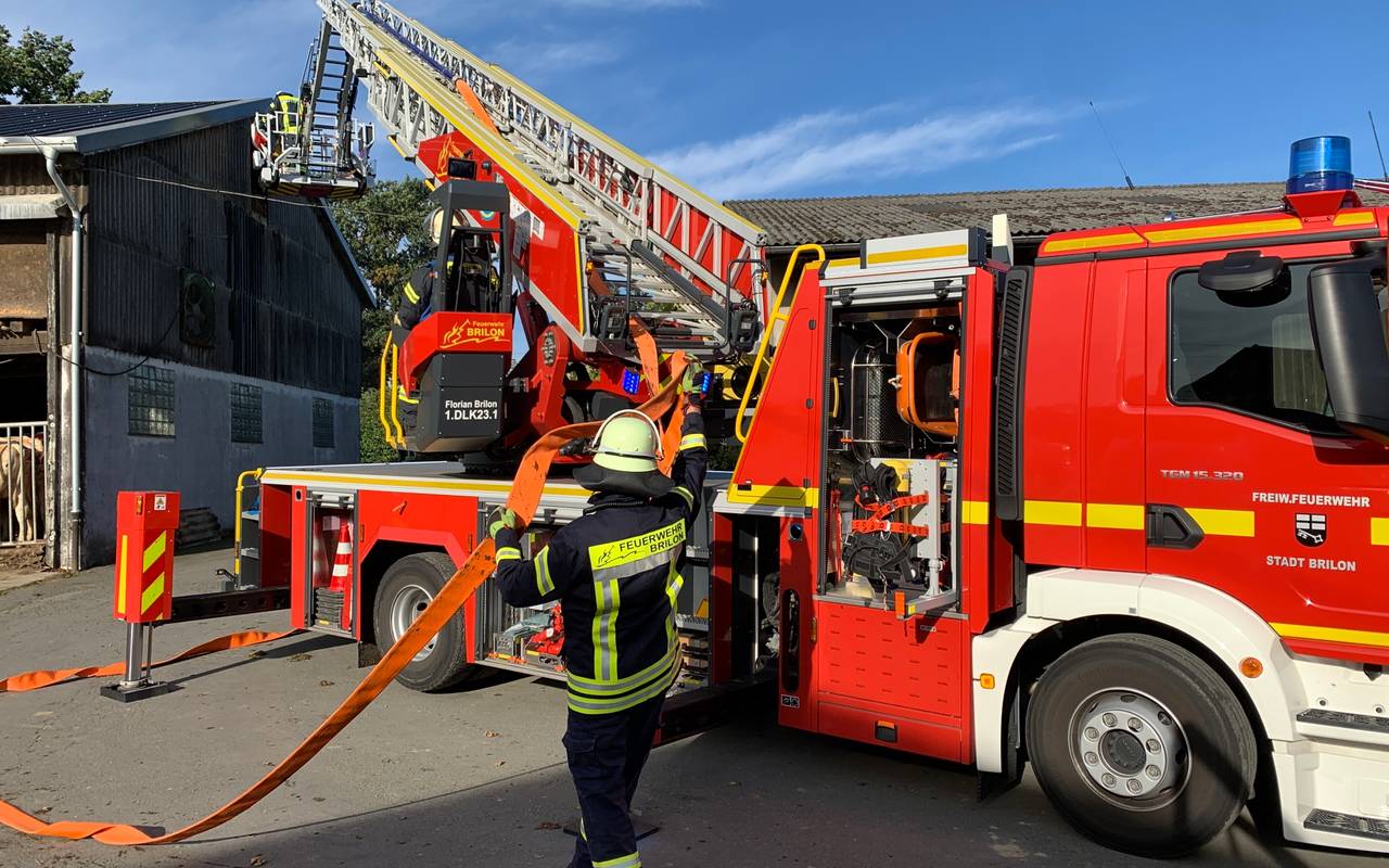 Durch einen schnellen Löscheinsatz der Feuerwehr Brilon mit schwerem Atemschutz konnte das Feuer eingegrenzt und eine Ausbreitung auf das gesamte Dachgeschoss und den Stall verhindert werden. Über die Drehleiter wurde daneben eine Zuluftöffnung geschaffen, um den Brandrauch aus dem Dachgeschoss abzuführen. Da der Brand schnell unter Kontrolle war, konnten die im Erdgeschoss der Scheune untergestellten Jungbullen sowie die Tiere im nebenliegenden Stall verbleiben. Eine Räumung hätte weitere Einsatzmaßnahmen und eine umfangreiche Betreuung der Tiere erfordert. Nachfolgend wurde das Stroh vom Dachboden geräumt und im Außenbereich endgültig abgelöscht. Eine umfassende Kontrolle mit der Wärmebildkamera erfolgte zum Abschluss.