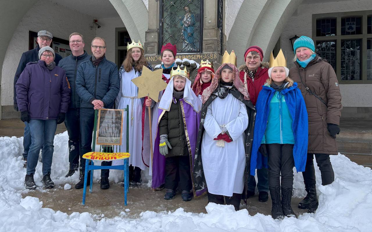 Rund um den Dreikönigstag brachten über 120 Sternsinger in der Briloner Kernstadt den Segen zu den Menschen und sammelten über 15.000 Euro für benachteiligte Kinder. Da nicht alle Häuser besucht werden konnten, waren einige Sternsinger auf dem Marktplatz und traten während des Wochenmarktes auf der Rathaustreppe auf. Die gesammelten Spenden von über 15.000 Euro sind zur Hälfte über die Sternsingeraktion für den Verein „Kinder in Rio e. V.“ bestimmt, der durch den Briloner Pastoralverbund regelmäßig Unterstützung erfährt. Die andere Hälfe der Spenden geht an weitere Projekte der bundesweiten Sternsingeraktion, bei der in diesem Jahr das Motto „Erhebt eure Stimme! – Sternsingen für Kinderrechte“ im Mittelpunkt steht.