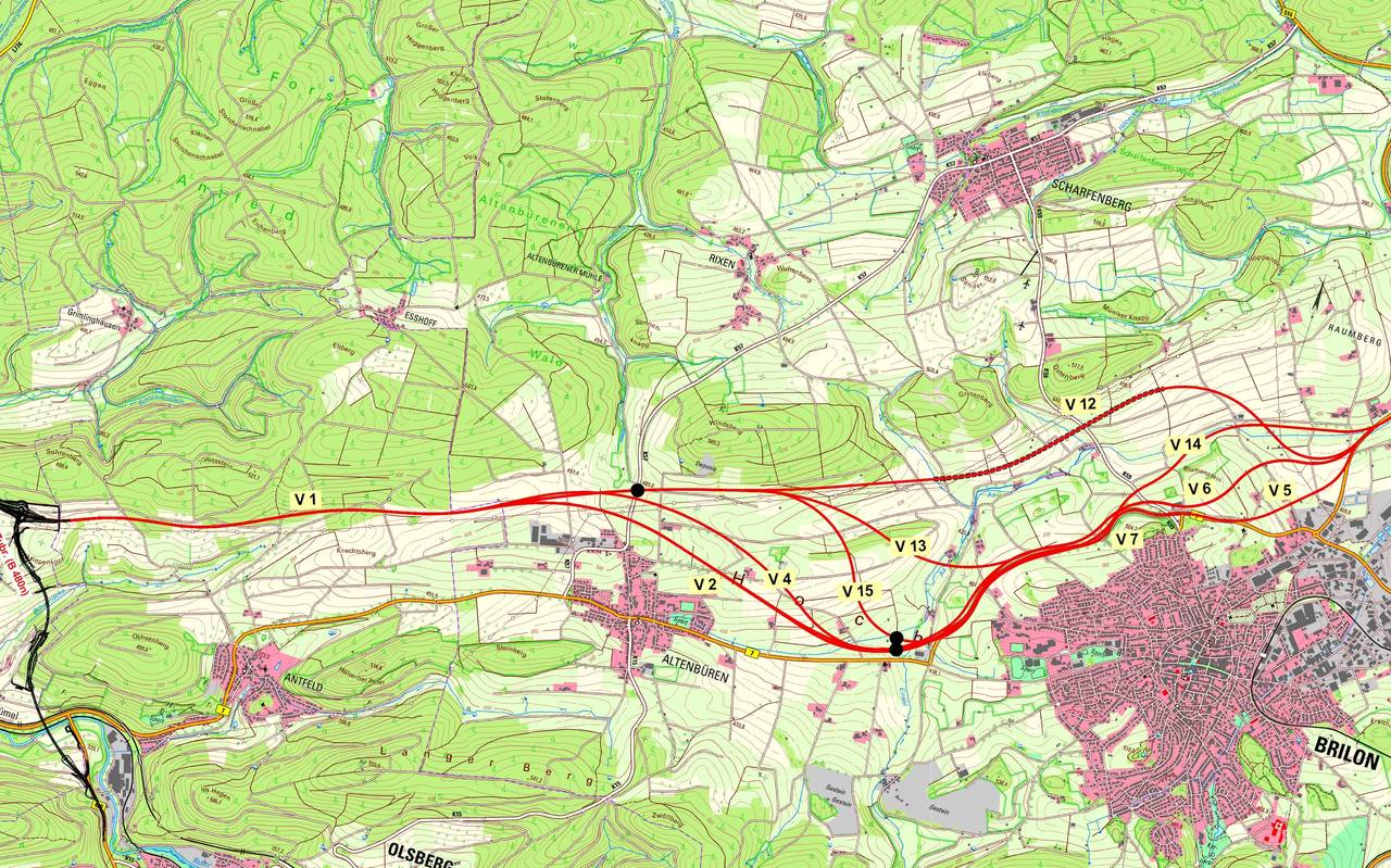 Seit Jahren wird über den Bau der B7n vom Autobahnende in Bestwig-Nuttlar bis nach Brilon diskutiert. Jetzt haben die Planungsbehörden sich für eine Vorzugsvariante der Trasse entschieden. Darüber werden heute zuerst sogenannte Zufallsbürger informiert und morgen Politiker. Alle anderen sind Mittwoch in die Schützenhalle in Brilon zu einem Info-Abend eingeladen. Die Umgehungsstraße soll besonders Brilon-Altenbüren und Olsberg-Antfeld vom Verkehr entlasten.