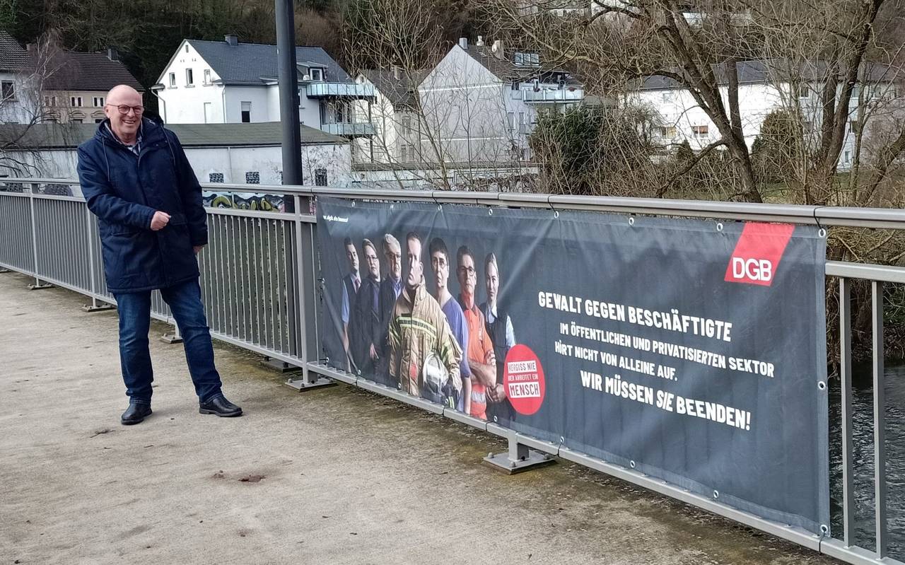 Der Deutsche Gewerkschaftsbund im Hochsauerlandkreis hat die Kampagne "Vergiss nie, hier arbeitet ein Mensch" gestartet. Damit will der DGB auf die Gewalt gegen Beschäftigte im öffentlichen und privatisierten Sektor aufmerksam machen. "Verbale Entgleisungen, psychische und physische Gewalt sind für die Beschäftigten, die unsere Gesellschaft stützen, längst keine Seltenheit mehr, so die Gewerkschaft. Diese Gewalt höre nicht von alleine auf. Um das Anliegen in die Öffentlichkeit zu bringen und eine hohe Aufmerksamkeit zu erreichen, hat der DGB im Stadtgebiet Arnsberg an zwei markanten Stellen Kampagnen-Banner aufgehängt.