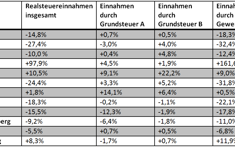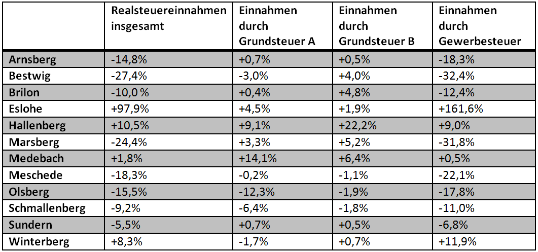 Die Einnahmen aus Grund- und Gewerbesteuer im HSK sind gesunken