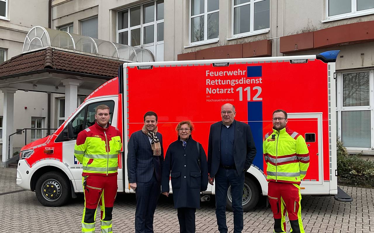 „Der zusätzliche Rettungswagen wird die Notfallrettungsversorgung im gesamten Stadtgebiet Sundern sichern und verbessern. Zudem wird die Sicherheit für die Gesundheitsversorgung gesteigert“, so Sunderns Bürgermeister Klaus-Rainer Willeke. „Wir sind froh, dass auch die Ärztinnen und Ärzte weiterhin aktiv dabei sind“, betont Dr. Jacqueline Bila, Erste Beigeordnete der Stadt Sundern.