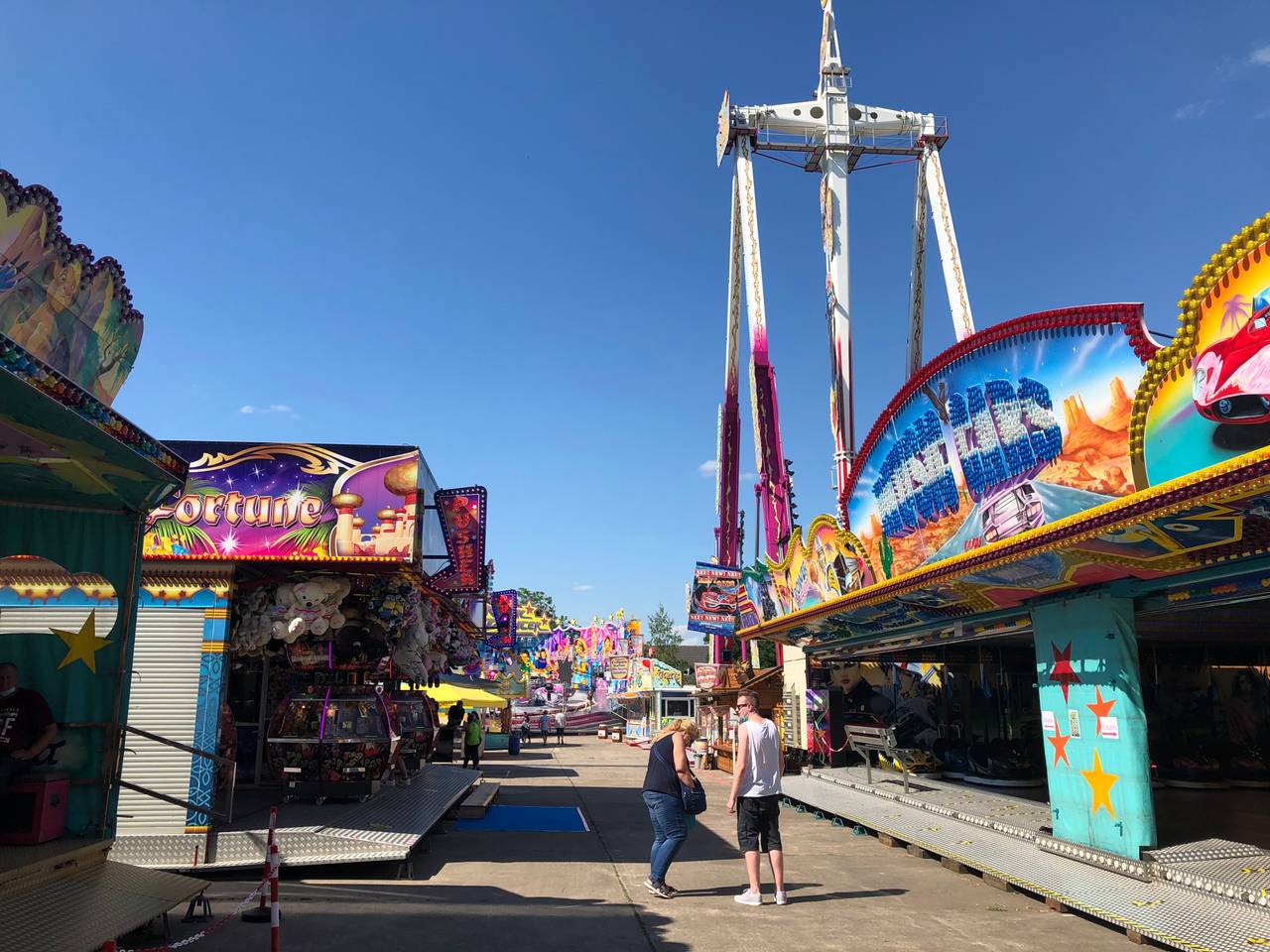 Insgesamt 19 Fahrgeschäfte und 25 Imbiss- und Getränkestände bietet der Ferienfreizeitpark in Erwitte. Es gibt aber nicht nur Attraktionen für Adrenalin-Junkies, auch für Familien mit kleinen Kindern gibt es passende Angebote, zum Beispiel das Karussell oder das Fahrgeschäft „Wilde Maus“. Durch Corona konnten mehrere Monate keine Kirmessen und ähnliche Events stattfinden, dadurch hatten die Schausteller lange nichts zu tun. Die Stadt Erwitte hat deshalb den Freizeitpark zusammen mit Schaustellern und einer Firma organisiert.