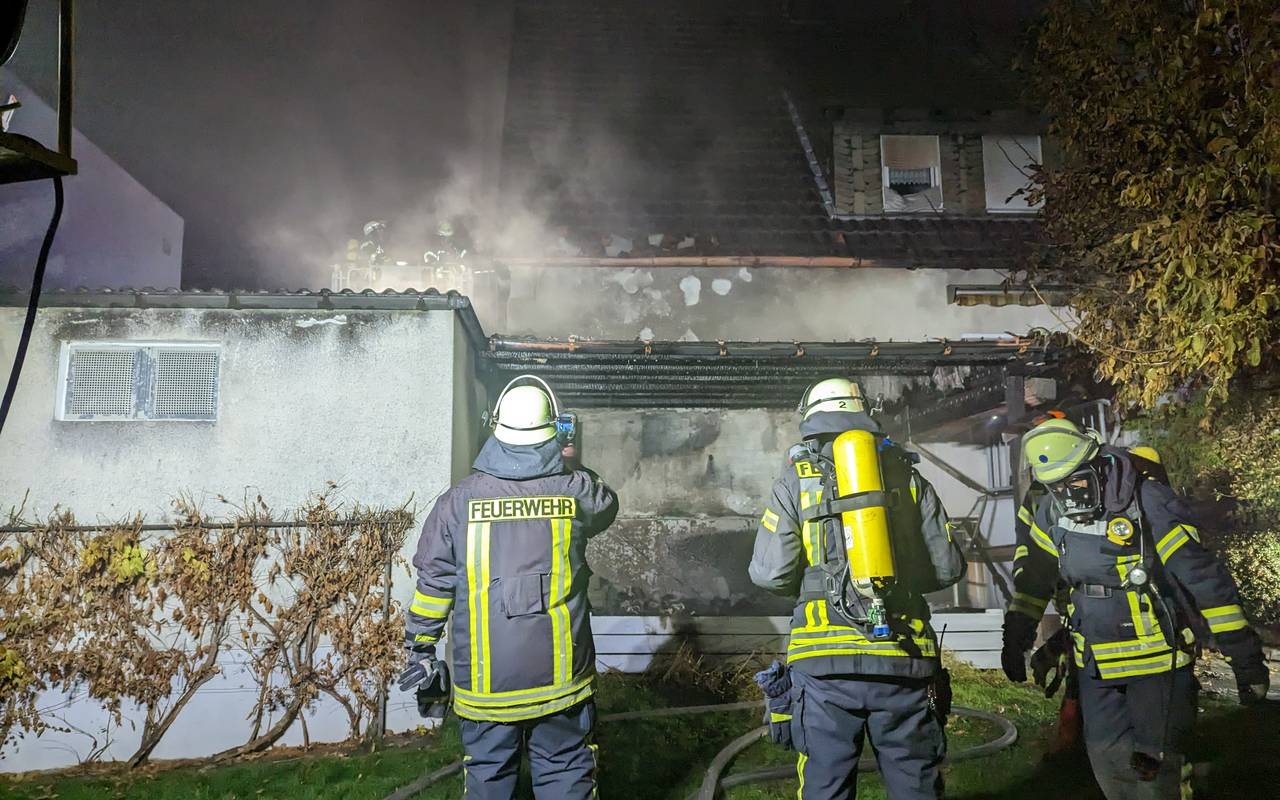 Die Feuerwehr Arnsberg wurde am Freitag, gegen 17:30 Uhr, zu einem Carportbrand in die Neheimer Straße im Ortsteil Bachum alarmiert. Ein Carport auf der Rückseite eines leerstehenden Hauses stand in Vollbrand und drohte auf das angrenzende Gebäude überzugreifen. Die Feuerwehrleute löschten die Flammen unter schwerem Atemschutz. Da nicht auszuschließen war, dass das Feuer bereits in das Gebäudedach vorgedrungen war, wurde per Drehleiter eine Dachöffnung vorbereitet. Parallel dazu wurde ein Teil des Carports mit einer Kettensäge demontiert. Über eine Steckleiter konnte das Dach mit einer Wärmebildkamera kontrolliert und nach einigen Nachlöscharbeiten Entwarnung gegeben werden.