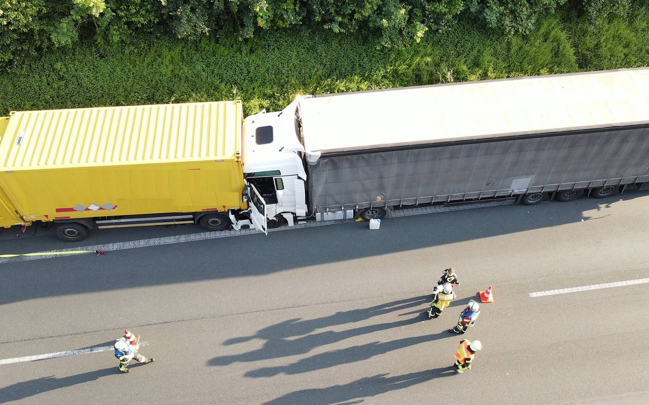 Auffahrunfall von LKW auf der A44 endet glimpflich. Langer Stau auf dem Weg ins Pfingstwochenende