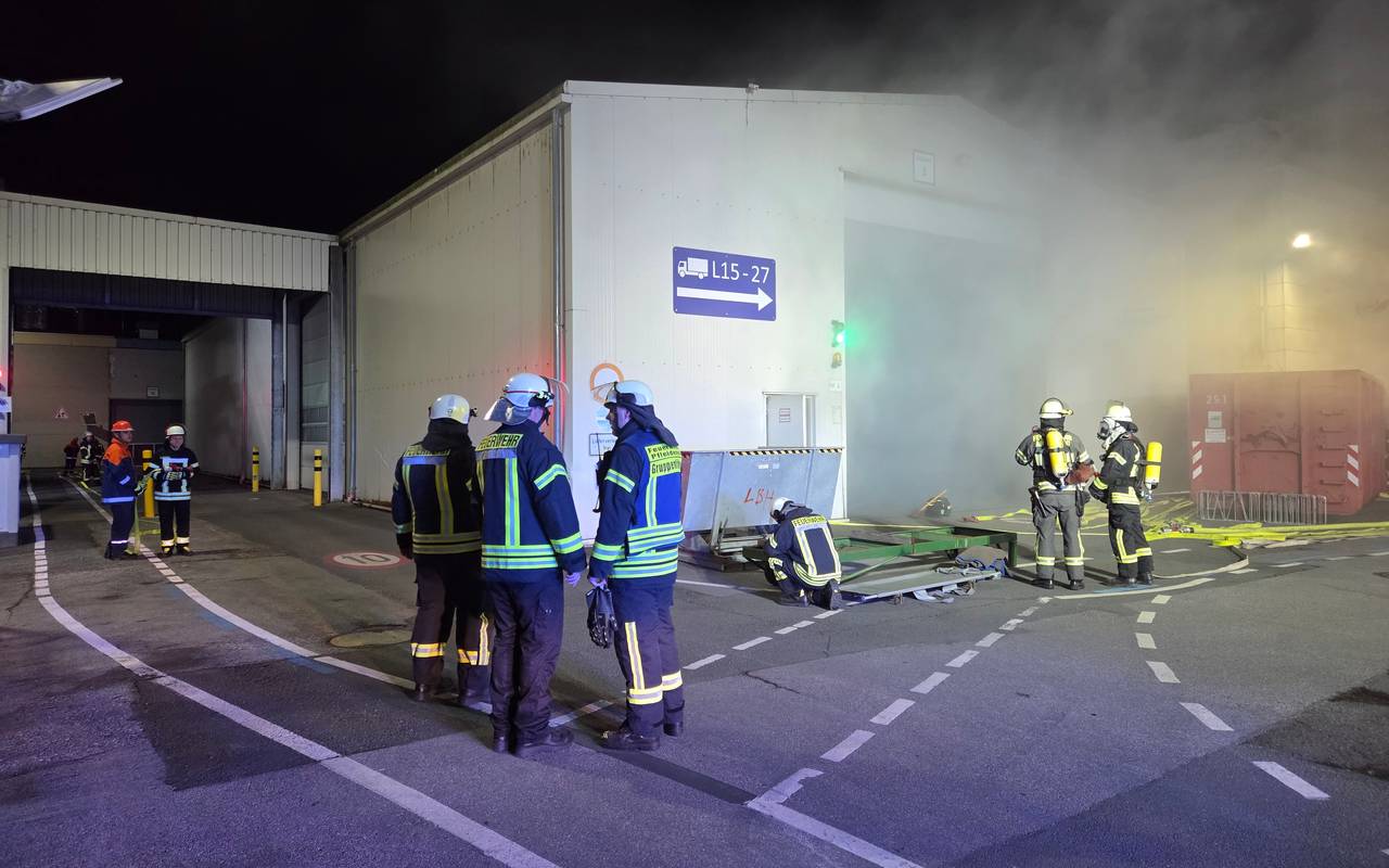 Auf dem Gelände eines Herstellers von Holzwerkstoffen im Ortsteil Bruchhausen wurde ein Lagerhallenbrand simuliert.
