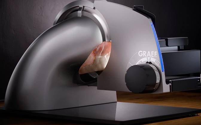 Der Küchengeräte Hersteller GRAEF bringt zum November den ersten beleuchteten Feinschneider auf den Markt. Durch die neue LED-Safty Control wird das Arbeiten mit dem Gerät sicherer. Sie leuchtet auf und zeigt an,, ob das scharfe Messer noch einsatzbereit ist. Auch der Schneidebereich ist beleuchtet. Der neue Feinschneider kann zum Beispiel Fleisch und Gemüse jetzt in Scheiben zwischen 0 - 2mm schneiden, heißt es von GRAEF.