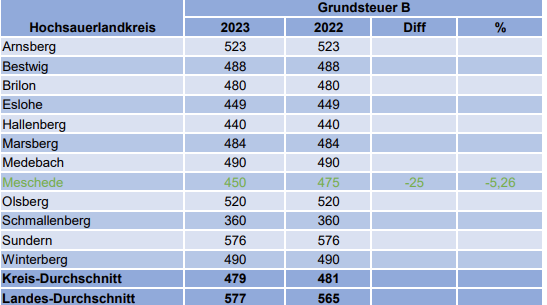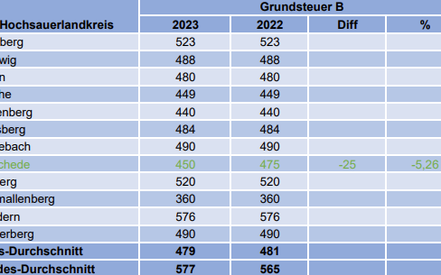 In diesem Jahr hat keine Stadt oder Gemeinde im Hochsauerlandkreis die Grundsteuer B erhöht.