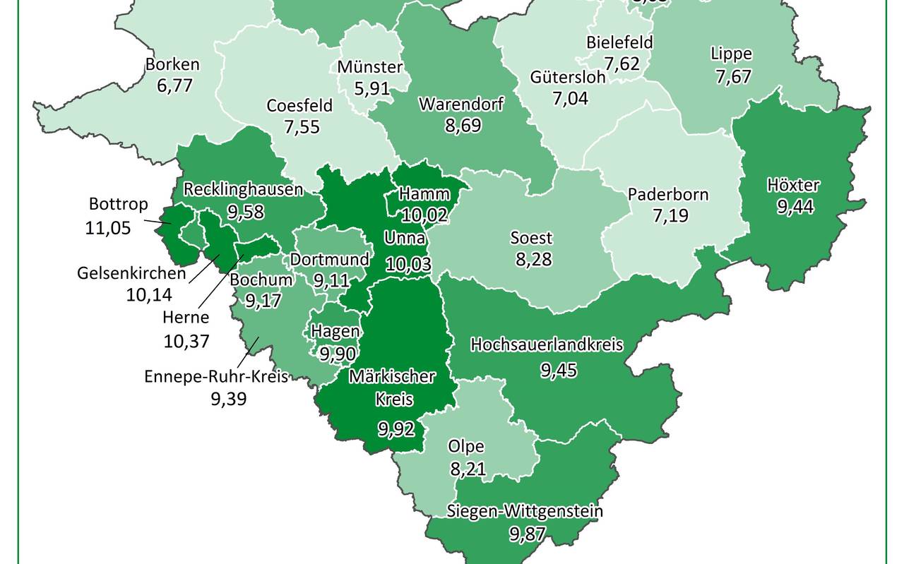 Laut einer Studie der Krankenkasse AOK liegen wir beim Anteil der Typ-2-Diabetiker in Westfalen Lippe im Mittelfeld. Hier wird vom Körper zwar Insulin produziert, aber die Körperzellen entwickeln eine Unempfindlichkeit dagegen.