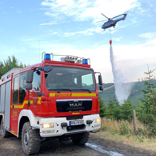 Seit diesem Jahr gibt es im HSK ein neues, geländefähiges Löschfahrzeug. Der Tank ist doppelt so groß wie bei einem normalen Löschfahrzeug. Das 120.000 Euro teure Spezialfahrzeug wird in Arnsberg stationiert und löscht Brände deutlich schneller.
