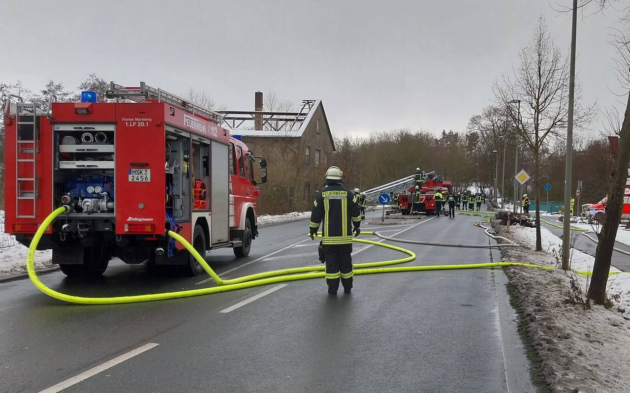 In einem leerstehenden Gebäude in Niedermarsberg war ein Feuer ausgebrochen. Es kam zeitweise zu Verkehrsbehinderungen auf der B7.