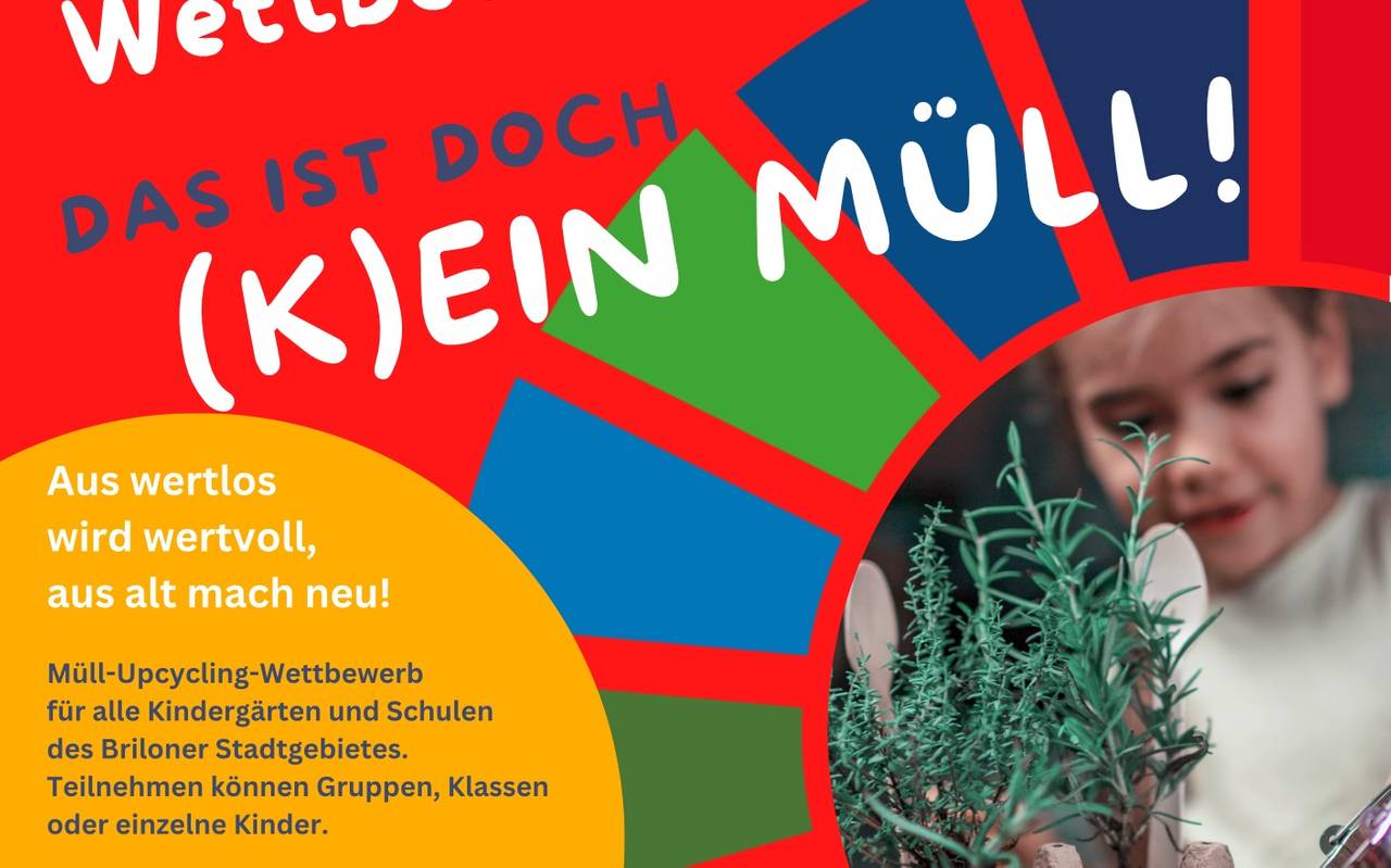 Das Bildungsnetzwerk Brilon nachhaltig lädt zu einem Müll-Upcycling-Wettbewerb ein, der unter dem Motto „Aus wertlos wird wertvoll, aus alt mach neu!“ steht. Er richtet sich an alle Kindergärten und Schulen des Briloner Stadtgebietes. Der Wettbewerb startet am 1. Mai 2023. Gruppen, Klassen oder einzelne Kinder sind herzlich eingeladen, daran teilzunehmen.