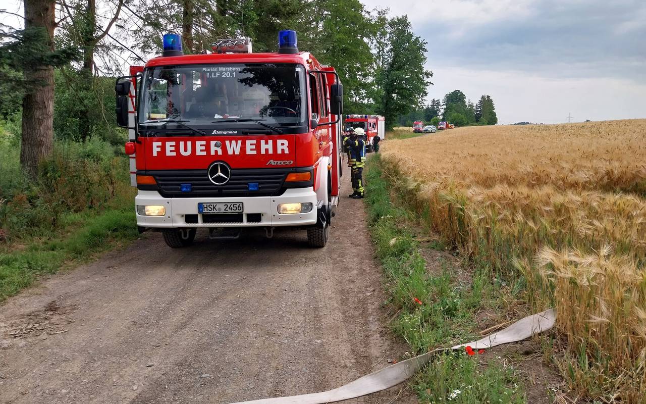 Feuerwehr hat Feuer auf einem Getreidefeld bei Marsberg-Bredelar schnell unter Kontrolle.