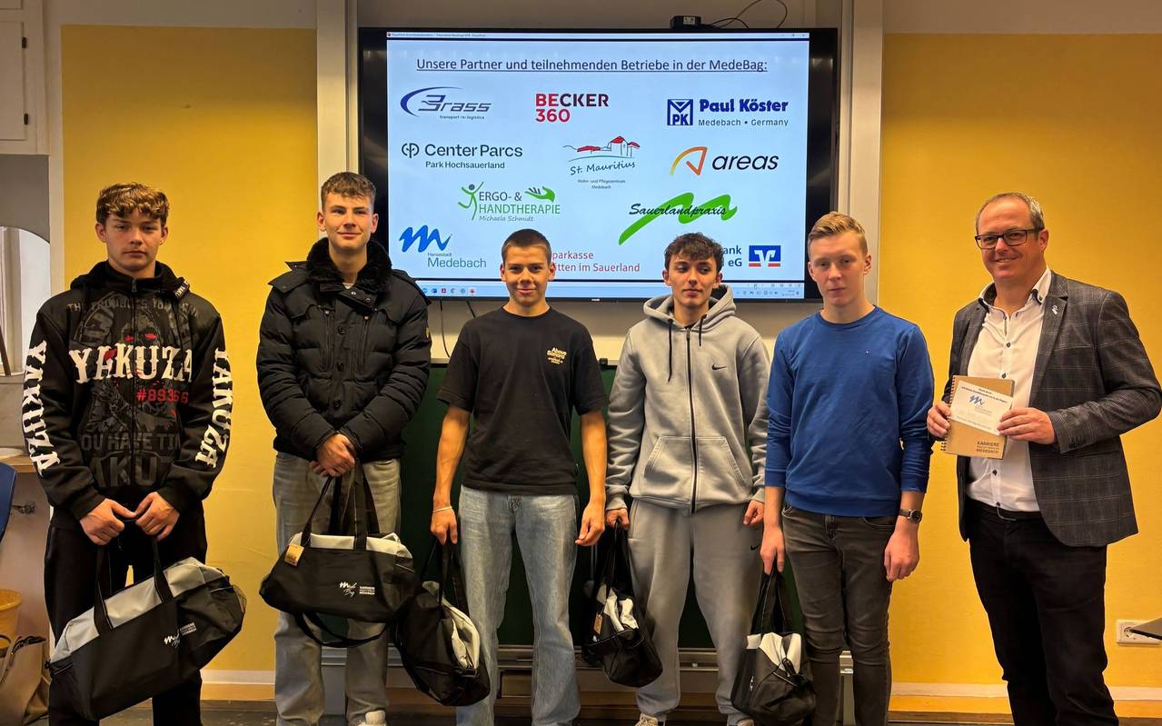 Die Wirtschaftsförderung der Stadt Medebach hat gemeinsam mit zehn Unternehmen aus dem Stadtgebiet die „MedeBag“ – die Karrieretasche für Medebach – auf den Weg gebracht. Rund 1.400 Schülerinnen und Schüler aus Abschlussklassen im Hochsauerlandkreis und im benachbarten Landkreis Waldeck-Frankenberg erhielten die Sporttasche, die kleinere Geschenke sowie Informationen zu Praktikumsmöglichkeiten, Ausbildungsplätzen und Studiengängen im Stadtgebiet enthält.