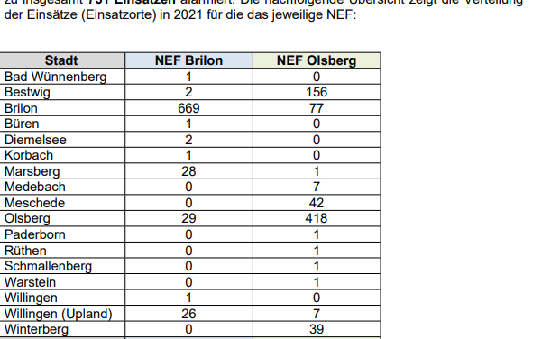 Die gestiegenen Einsatzzahlen seien kein Grund den im September verabschiedeten Rettungsdienst-Bedarfsplan zu ändern, so die Kreisverwaltung. Der sieht vor, einen neuen Notarzt-Standort für beide Städte in Brilon-Altenbüren einzurichten. Ende 2023 soll die Zusammenlegung vollzogen sein. Gegen diese Entscheidung waren die Städte Brilon und Olsberg Sturm gelaufen. Ihrer Ansicht nach würde der Rettungswagen in Zukunft zu lange brauchen, um zum Einsatzort zu kommen.