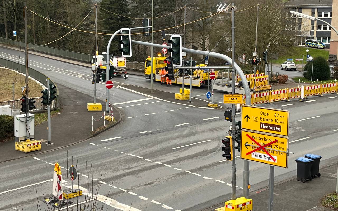 Straßen.NRW hat eben die Hennebrücke am Kreishaus gesperrt