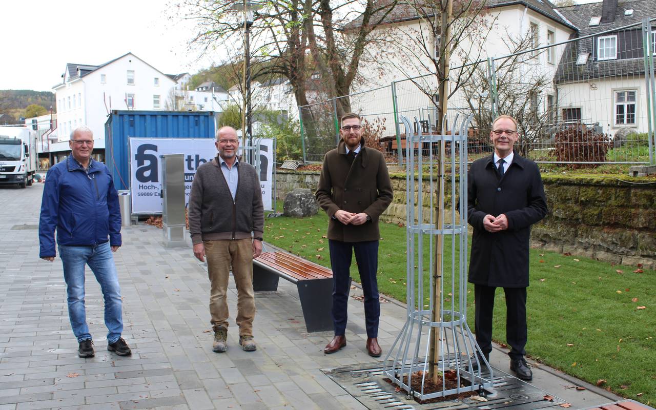 In Meschede wurden in der City 8 neue Bäume auf dem Stiftsplatz und in der Steinstraße gepflanzt. Vier Zierbirnen schmücken jetzt den Stiftsplatz, vier Amberbäume die Steinstraße, so die Stadt. Gespendet wurden sie - wie schon viele weitere Bäume in Meschede - vom Optikerunternehmen Fielmann. Besonders geachtet wurde auf die Auswahl der Bäume. Sie sollen Hitze und Trockenheit gut vertragen. Sie sind also ideal für Standorte in der Innenstadt, so Michael Klauke, Bauleiter der Stadt Meschede.