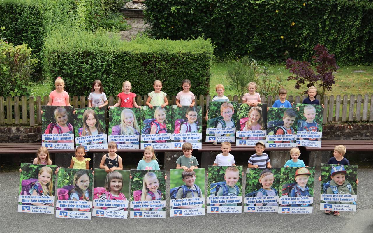 Die Verkehrssicherheits-Aktion wird schon seit mehr als zehn Jahren von den Eltern der Schulanfänger organisiert. Die Volksbank Sauerland unterstützt sie finanziell.