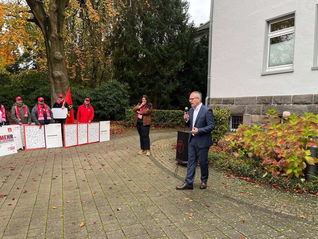 Carmen Schwarz, 1. Bevollmächtigte der IG Metall Arnsberg hat ausführlich die Lohnforderung in Höhe von 7 Prozent verteidigt. Die Forderung orientiere sich an den Geschäftsergebnissen der Unternehmen, die in einer wirtschaftlich zufriedenstellenden Lage seien. Es gebe Firmen, denen es hervorragend gehe, es gebe Firmen, denen es aktuell normal gehe und es gebe Firmen, die vor großen Herausforderungen stünden, so die Gewerkschafterin. Den Beschäftigten stehe ein kräftiges Lohnplus zu, damit sie die allgemein gestiegenen Kosten bezahlen können.
