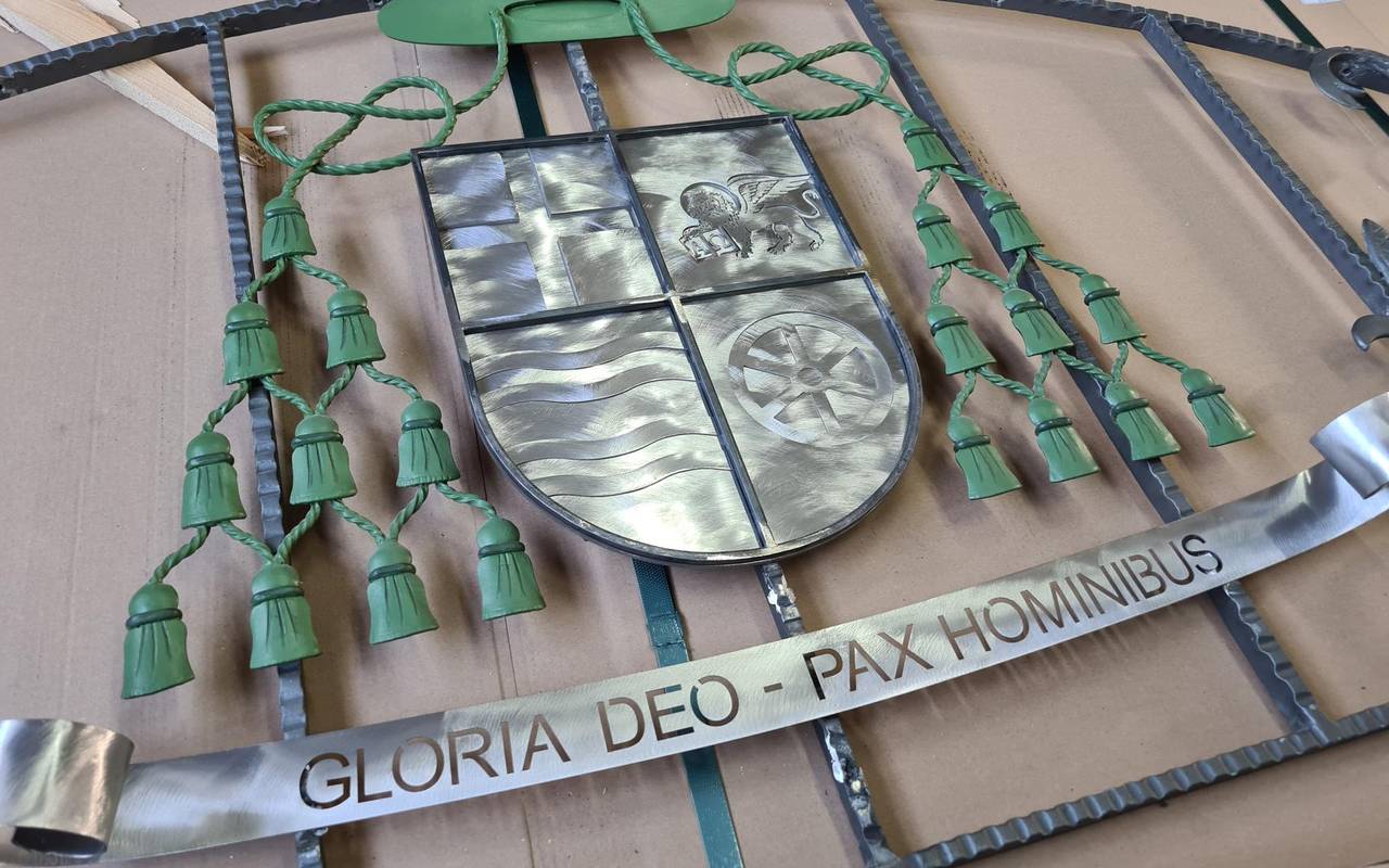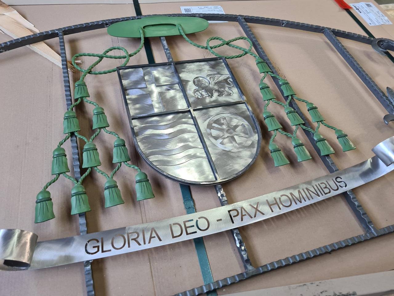 Das Wappen des Erzbischofs ist in der Schmiede der Abtei Königsmünster in Meschede hergestellt worden