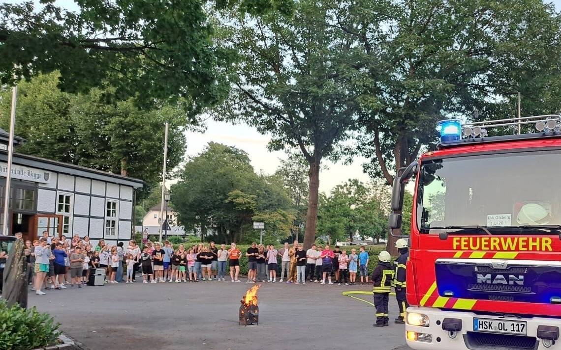 Teilnehmer eines Ferienlagers in der Schützenhalle Bigge schaffen es, dass die Feuerwehr anrückt - für eine Wette