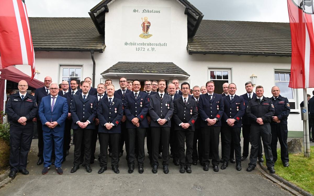 In Olsberg werden die Feuerwehren nach und nach neu ausgerüstet. Bürgermeister Fischer betonte jetzt beim Stadtfeuerwehrtag die konsequente Umsetzung des im Jahr 2021 vom Rat der Stadt Olsberg beschlossenen Bedarfsplanes. "Das betrifft die Beschaffung von Fahrzeugen und die Modernisierung und Neubauten von Feuerwehrhäusern. Die Löschgruppen Elleringhausen und Gevelinghausen haben kürzlich ihre neuen Löschfahrzeuge eingeweiht, ein neuer Gerätewagen Logistik für den Löschzug, sowie ein Mannschaftswagen für die gerade gegründete Kinderfeuerwehr sind bestellt", so Fischer. Letzterer werde durch Mittel des Landes NRW bezuschusst.