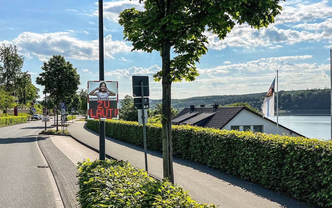 Die Sauerländer Seen sind beliebte Ausflugsziele. Gerade an den Wochenenden leiden die Anwohner aber unter dem Lärm von Autos und Motorrädern. Am Sorpe- und am Möhnesee haben deshalb in diesem Jahr zum ersten Mal digitale Tafeln die Lärmbelästigung gemessen. Mit positiven Ergebnissen: Durch das Lärm-Display hat sich die Lärmbelästigung halbiert, heißt es von der Gemeinde Möhnesee. In der ersten drei Wochen hatten sich die Lärmemissionen sogar um drei Viertel reduziert.