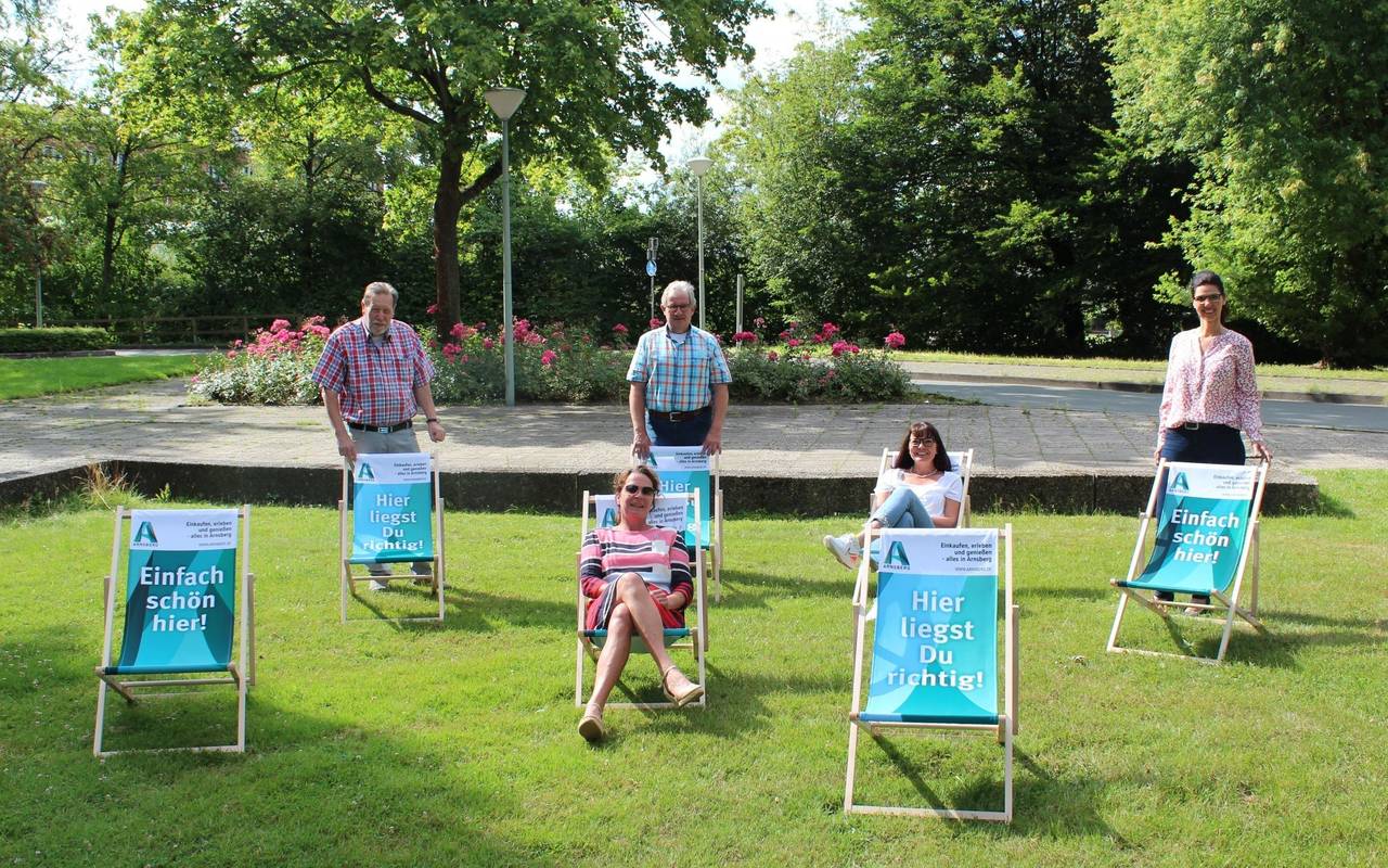 250 Liegestühle sollen ab sofort in Arnsberg und seinen Stadtteilen sommerliches Flair verbreiten. Die Liegestühle mit dem Slogan" Hier liegst du richtig" sind heute auch an die Werbegemeinschaften in Neheim, Hüsten und Oeventrop ausgeliefert worden. Die Stühle werden vor Gastronomiebetrieben und Geschäften platziert. Die Liegestühle sind Teil verschiedener gemeinsamer Sommeraktionen in Arnsberg.