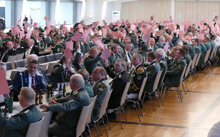 Im Mittelpunkt der Tagesordnung standen neben den üblichen Berichten zur Geschäfts- und Kassenlage auch eine wichtige Satzungsänderung sowie Neuwahlen zum Bundesvorstand. Mit der Anpassung der Satzung sollen die sieben Kreisschützenbünde jeweils eine Stimme mehr, also zukünftig neben der Stimme des jeweiligen Kreisoberst, insgesamt jeweils vier Stimmen im Bundesvorstand haben.
