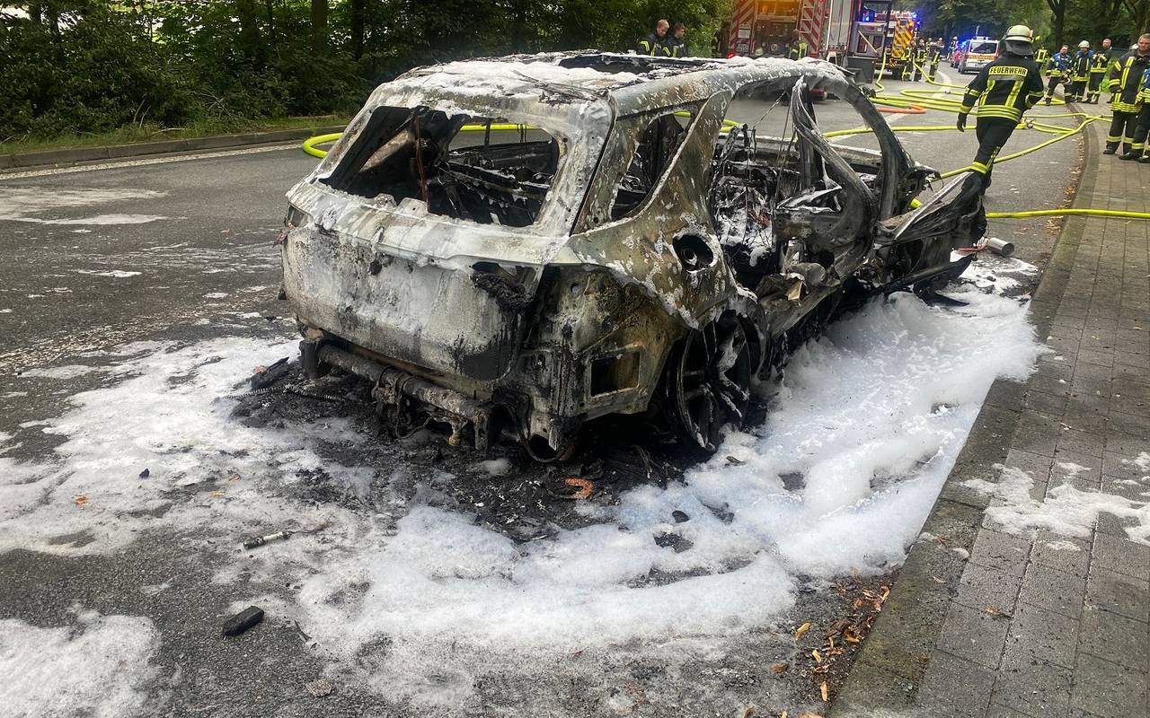 Am frühen Sonntagnachmittag wurden die Einheiten aus Meerhof, Oesdorf und Essentho auf die Autobahn 44 alarmiert. Auf dem Parkplatz Blankenrode kam es, vermutlich aufgrund eines technischen Defekts, zum Brand eines Autos vom Typ Mercedes GLE, berichtet die Feuerwehr Marsberg. Gegen 14.15 gab es den Einsatzalarm für die Feuerwehr. Bereits auf der Anfahrt wies eine tiefschwarze Rauchwolke den Einsatzkräften den Weg. Bei Eintreffen der ersten Kräfte stand das Fahrzeug im Vollbrand. Aufgrund eines hybriden Antriebs – eine Kombination aus einem Verbrennungs- und Elektromotor – wurde dem Löschwasser initial Netzmittel zugemischt, um eine höhere Löschwirkung zu erzielen und speziell die Batterietechnik abzulöschen. Die extreme Hitze führte dazu, dass der Motorblock und die Leichtmetallfelgen schmolzen.