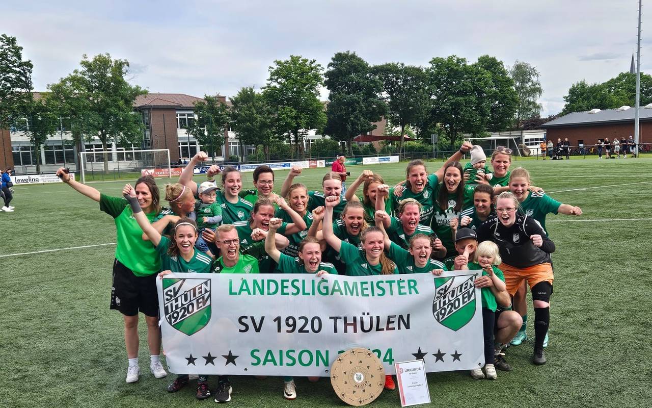 Sie sind als Meister der Landesliga Staffel 1 in die höchste Spielklasse in Westfalen - die Westfalenliga - aufgestiegen. Der SV Thülen ist damit die ranghöchste Mannschaft im kompletten Hochsauerlandkreis - bei den Damen und sogar auch, wenn man die Herrenligen mit in die Wertung nimmt. Für das knapp 1000-Seelen-Dorf im Altkreis Brilon ist das ein sehr großer Erfolg und steht dem Aufstieg der Männermannschaft im Jahr 1992 in die Verbandsliga um nichts nach. Besonders, wenn man sieht, wer aus den beiden anderen Landesliga-Staffeln ebenfalls den Sprung in die Westfalenliga geschafft hat. Dabei handelt es sich um den FC Schalke 04 und Borussia Dortmund.