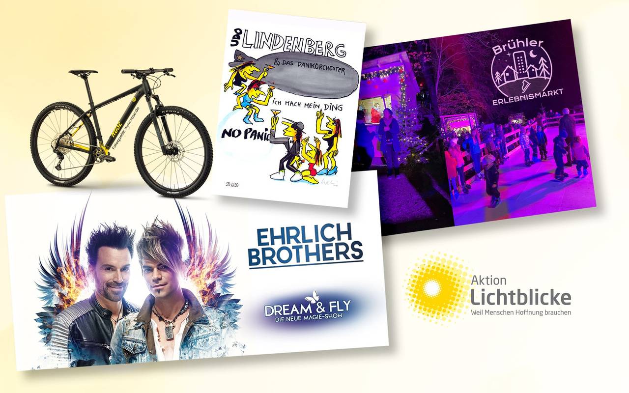 Jetzt in der Vorweihnachtszeit geht unsere Aktion Lichtblicke in die heiße Phase. Wir starten heute unsere schon traditionelle Auktion zugunsten von in Not geratenen Familien und Kindern. Highlights sind unter anderem ein Backstage-Treffen mit den Ehrlich-Brother plus einem signierten Zauberkasten und ein Bike im BVB-Look mit den Unterschriften der Borussia-Dortmund-Stars. Die Auktion läuft bist zum Freitag. Alle Infos dazu findet ihr unter Lichtblicke.de.