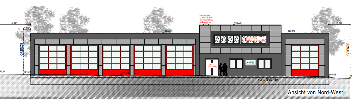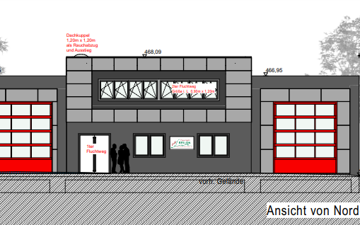 Der Neubau war nötig geworden, weil die alte Fahrzeughalle nicht mehr den modernen Anforderungen im Hinblick auf Größe und Sicherheit entsprochen hatte. Auch hatte das alte Gebäude erhebliche Feuchtigkeitsschäden.