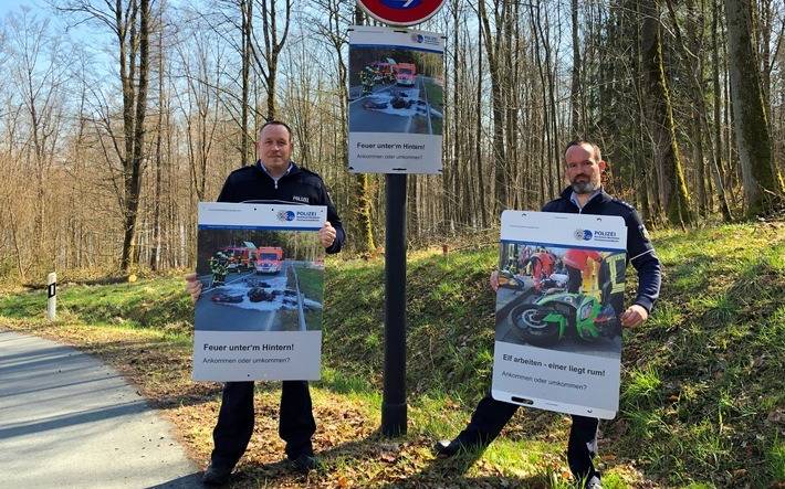 Polizei im HSK will mit Plakaten Biker auf Gefahren aufmerksam machen.