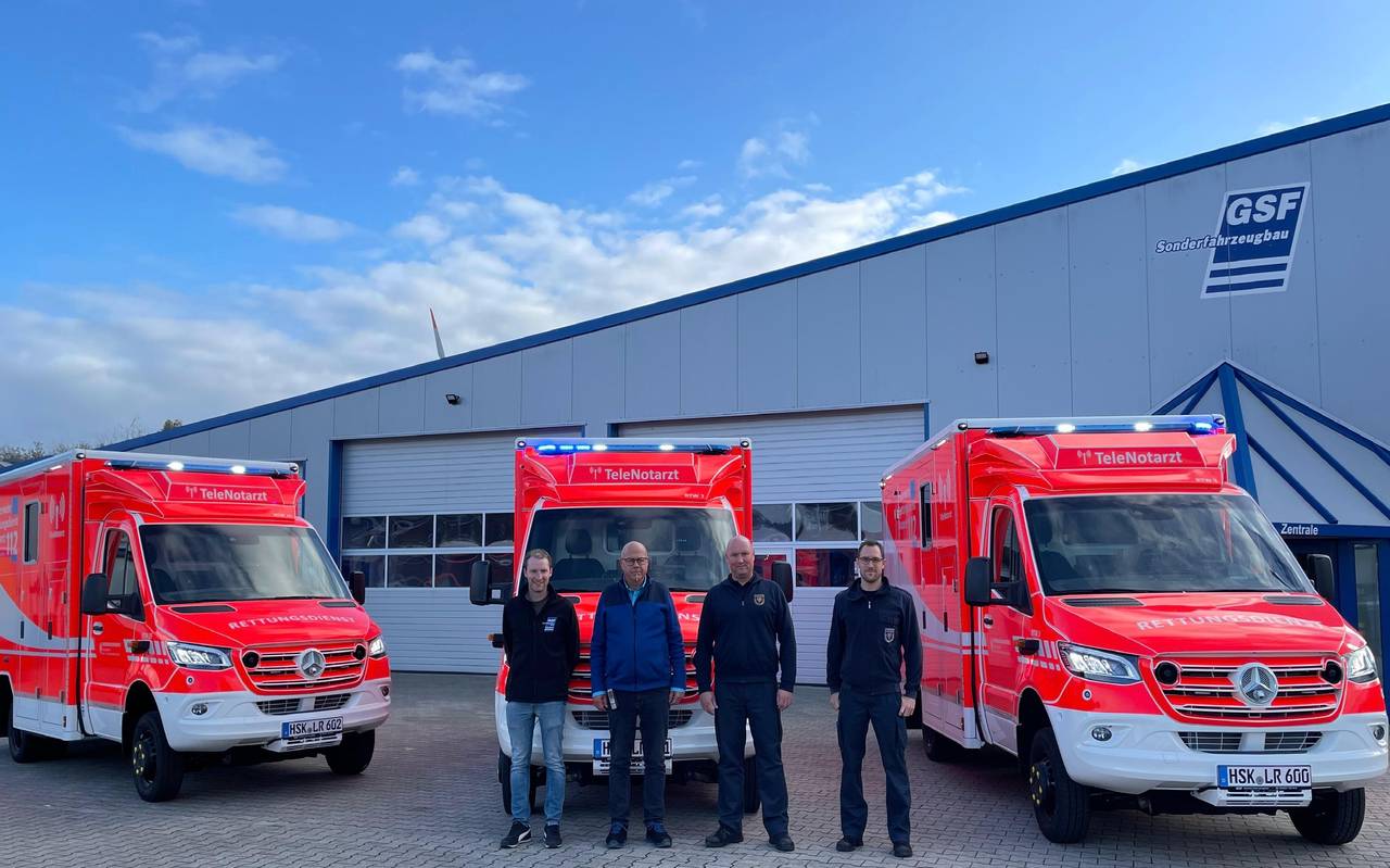 Bei einem medizinischen Notfall zählt jede Sekunde. Der Hochsauerlandkreis verbessert die Notfallversorgung bei uns weiter. In den kommenden vier Jahren werden 10 Mio Euro in 30 hochmoderne Rettungswagen investiert. Die ersten drei sind an den Rettungswachen in Meschede und Eslohe stationiert. Die nächsten zwei neuen Rettungswagen kommen noch Ende dieses Jahres. Die neuen Fahrzeuge wurden jetzt beim Hersteller GSF Sonderfahrzeugbau in Twist im Emsland übernommen.