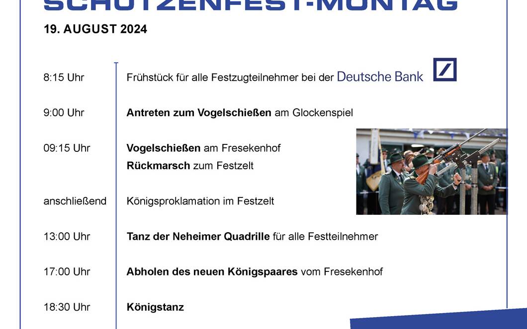 Im Sauerland gehen heute zwei Volksfeste zu Ende. Das Schützenfest in Neheim geht kurz nach 9 Uhr mit dem Vogelschießen weiter. In Winterberg startet die Tierschau um 9 Uhr 30.