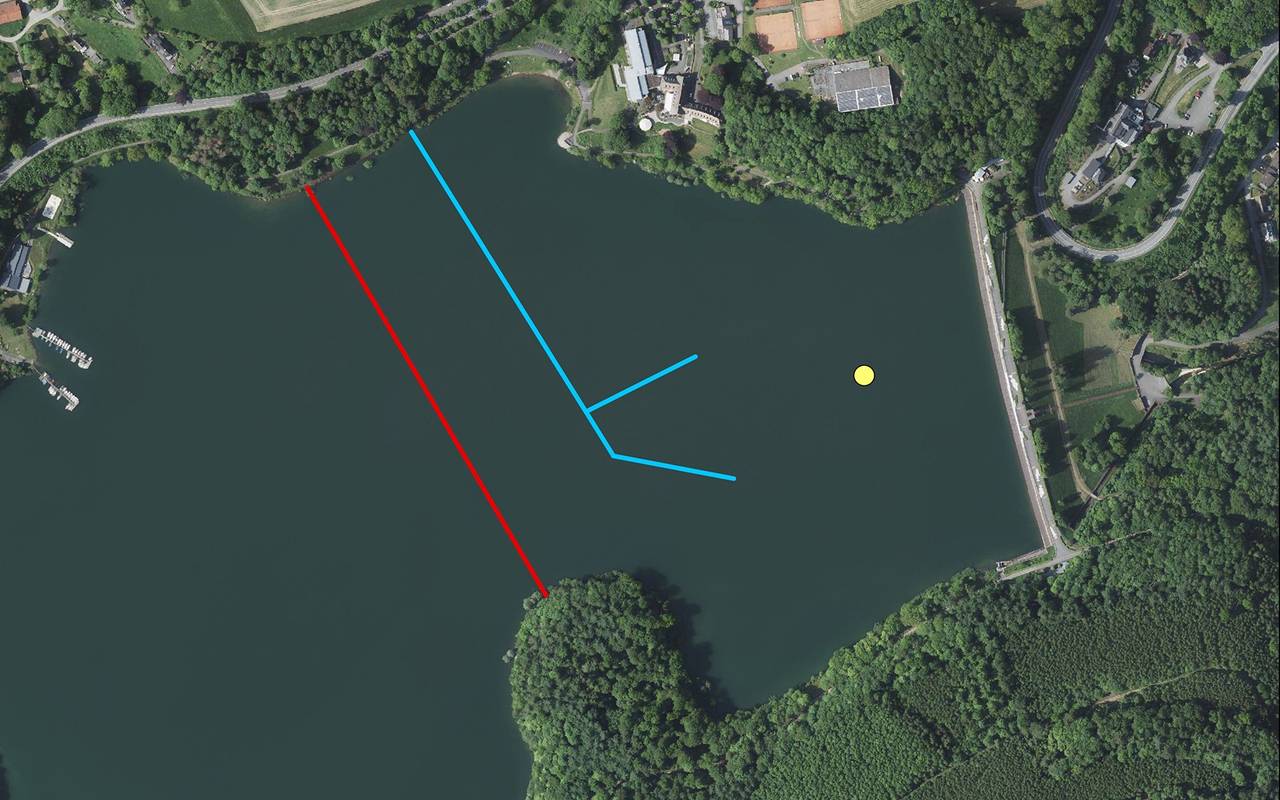 Die imaginäre Linie zwischen den zwei tiefen Buchten (am Nordufer erste Bucht von der Staumauer aus gesehen, Höhe Yachtclub Möhnesee; am Südufer zweite Bucht von der Staumauer aus gesehen) darf Richtung Staumauer nur noch ohne anglerische Tätigkeit überfahren werden. Ein Festmachen von Booten an den orangegelben Bojen, die die End- und Zwischenstücke der Sauerstoffanreicherungsanlage markieren, ist grundsätzlich untersagt.