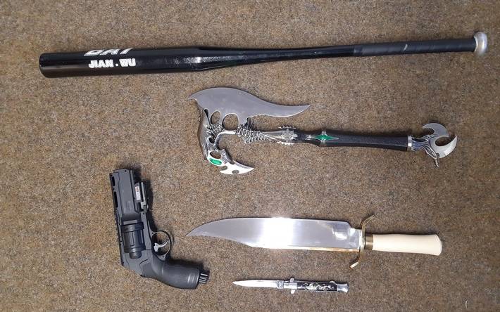 In den Wohnungen der 19- bis 38-jährigen Männer fanden die Beamten eine Schreckschusspistole, einen CO2-Revolver, eine Machete, eine Axt, einen Baseballschläger sowie ein Springmesser. Zudem stellten die Ermittler einen dreistelligen Bargeldbetrag, rund 50 Gramm Marihuana, MDMA und Amphetamine sowie mehrere verbotene Tabletten sicher. Die vier Männer wurden nach polizeilichen Maßnahmen wieder entlassen.