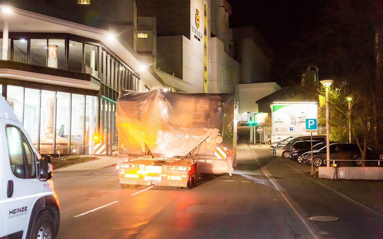Ein Schwertransport-Konvoi hat heute Nacht Teile für die neue Flaschenabfüllung bei der Veltins-Brauerei in Meschede-Grevenstein angeliefert. Die Schwertransporte von Süddeutschland und aus dem Norden ins Sauerland waren über Wochen detailliert geplant worden.