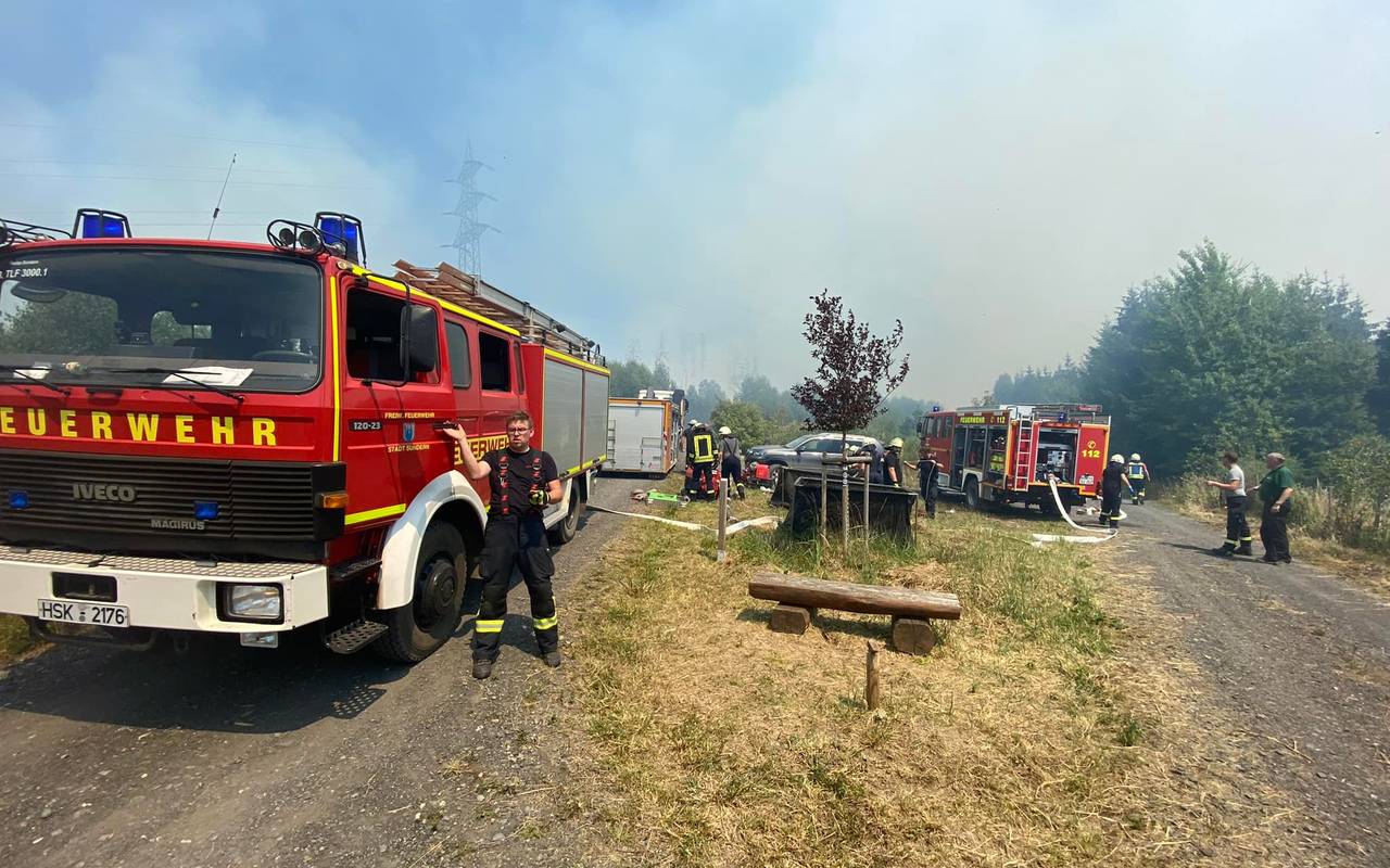 Update 16 Uhr: Aktuell sind rund 100 Feuerwehrleute und Mitarbeiter von Rettungsdiensten vor Ort. Der Hubschrauber wurde zu einem Brand nach Altena abberufen. Ein neuer Hubschrauberpilot wird aktuell eingewiesen. Sein Hubschrauber Er soll bald eingesetzt werden und jeweils 2000 Liter Löschwasser von Sorpesee holen. Es gibt nach wie vor immer wieder neue Brandherde auf einer Fläche von rund 60 000 Quadratmetern. Der Wind, die Hitze und das unwegsame Gelände erschweren die Löscharbeiten.