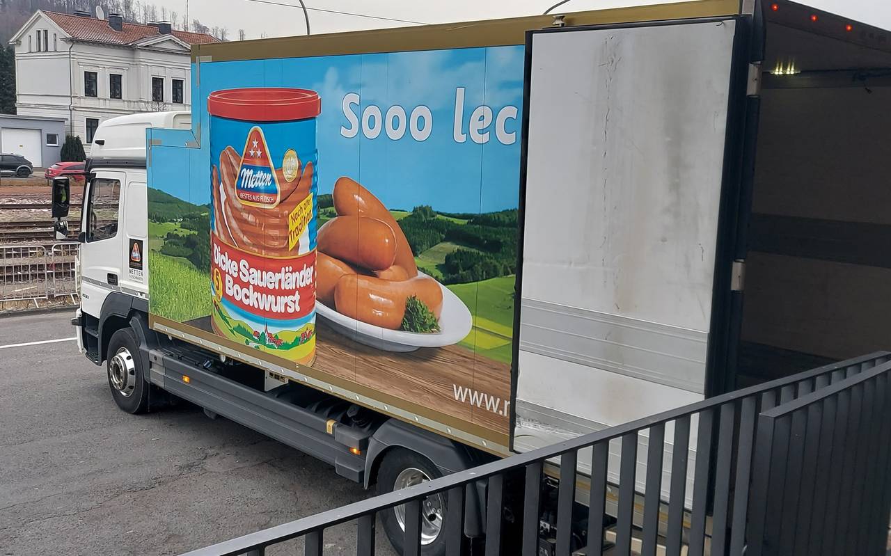 Spende: LKW mit Bockwürstchen für die Arnsberger Tafel