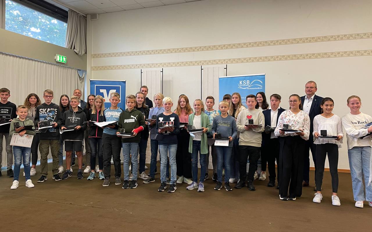 Der Kreissportbund konnte die Ehrungen zum ersten Mal wieder im großen Rahmen in der Aula des Berufskollegs Meschede durchführen. Geehrt wurden alle Schulen und Sportvereine, die unter den ersten zehn Plätzen des Sportabzeichenwettbewerbs waren. Sie wurden mit einem Gutschein in Höhe von 100€ bis 500€ belohnt.