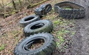 Unbekannte entsorgen Reifen und Baggerketten an Wirtschaftsweg in Sundern